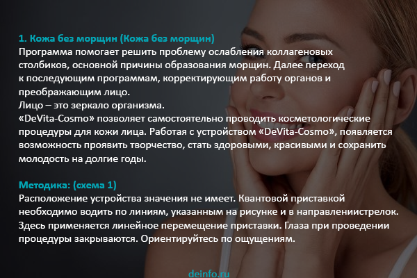 Правильно применяя программы устройства «DeVita Cosmo», каждый может предотвратить появление на коже этих нежелательных «гостей».